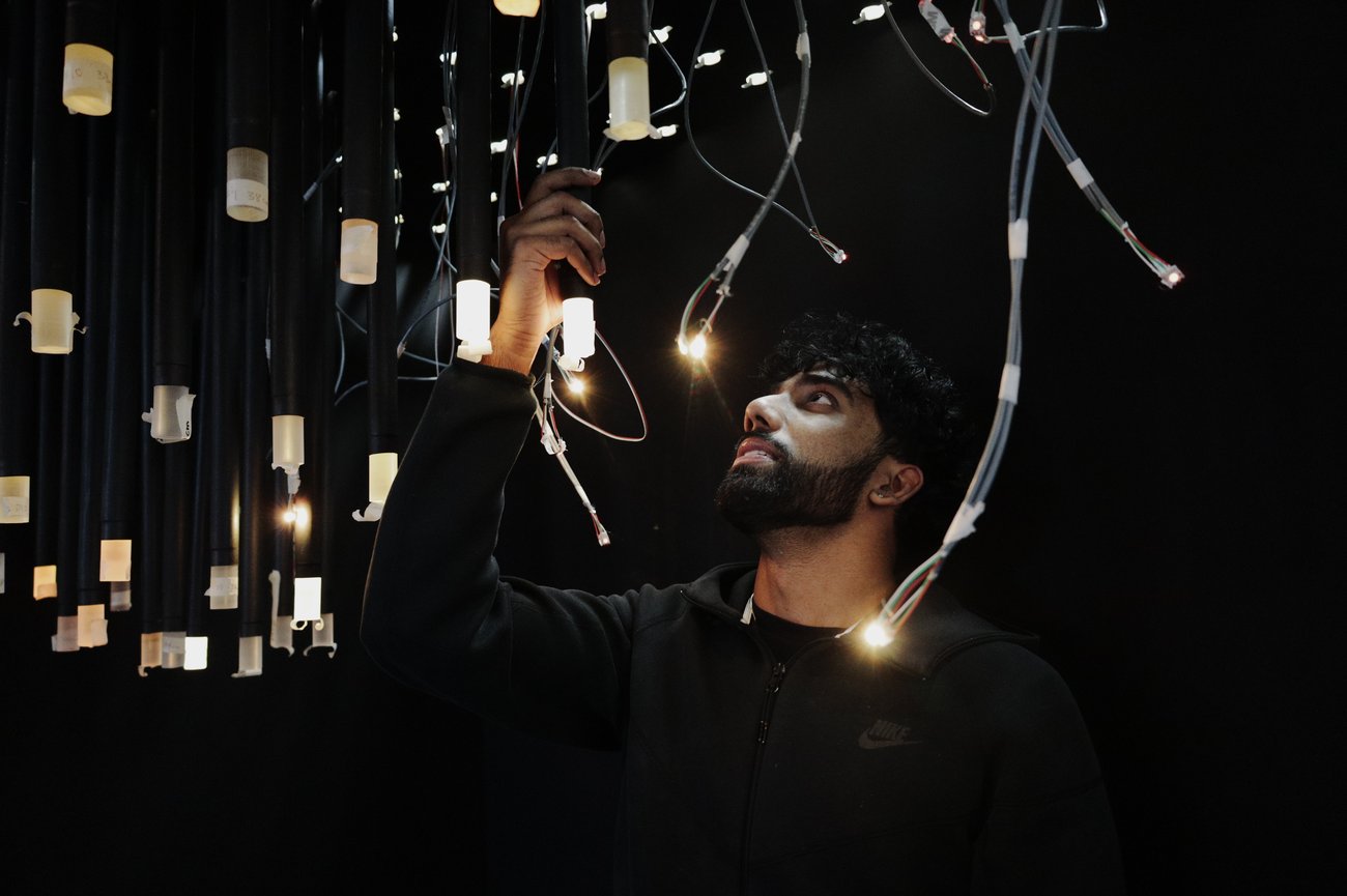 ‘STRATA’ is a student-led installation directed by DAS undergraduate student Dhruvan Modugula. The project grew from a shared curiosity about how light, material, and landscape can come together to create a sense of movement.
