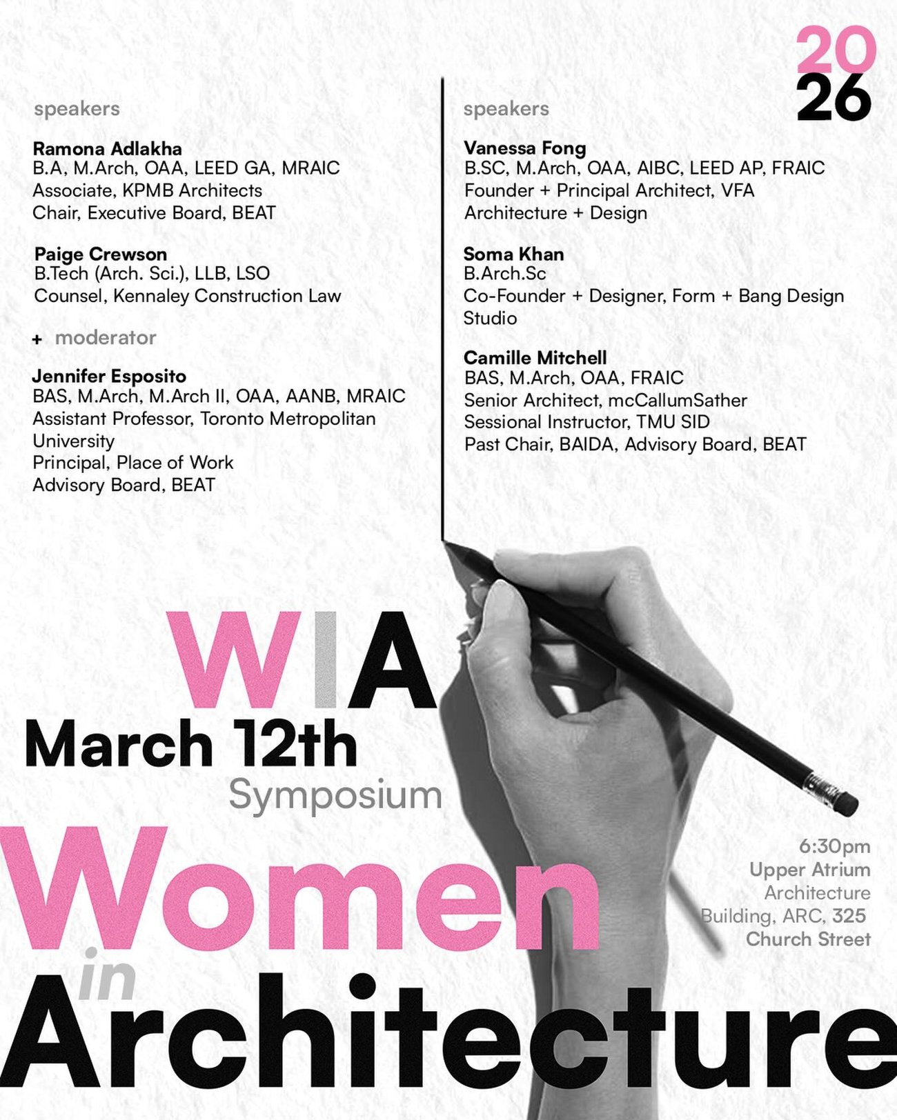 The Architectural Course Union (ACU) at Toronto Metropolitan University’s Department of Architectural Science is proud to present the third annual Women in Architecture (WIA) Symposium.