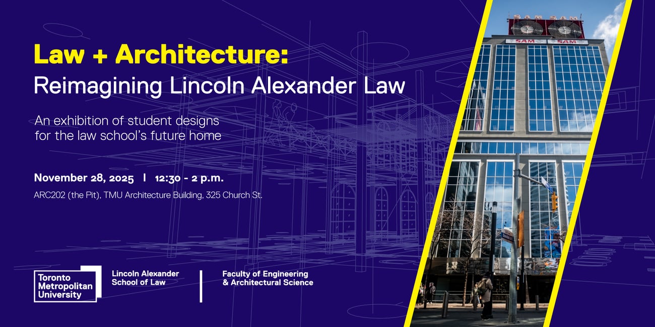 Over the course of the Fall 2025 term, law students and architecture students have been working together to reimagine the possibilities for 277 Victoria Street, the future home of the Lincoln Alexander School of Law. The building, which is located adjacent to Sankofa Square, represents the gateway to the university and the city. This project is an exploration of how physical spaces can be transformed to embody a deep commitment to justice, inclusion and community-building – values that are integral to the future of legal education. Participating teams consist of students enrolled in ARC920 Advanced Architecture Studio (led by DAS Chair and Prof. Lisa Landrum and Marcin Kedzoir) and students enrolled in JUR235 Architecture and Law (led by Prof. David Sandomierski).
